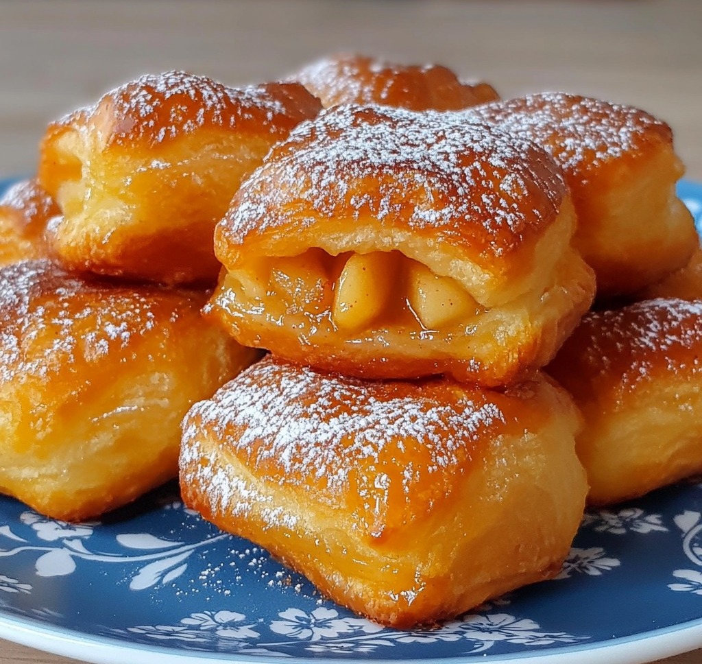 Des beignets feuilletés ultra légers, gonflés comme des oreillers, croustillants à l’extérieur et fondants à l’intérieur…