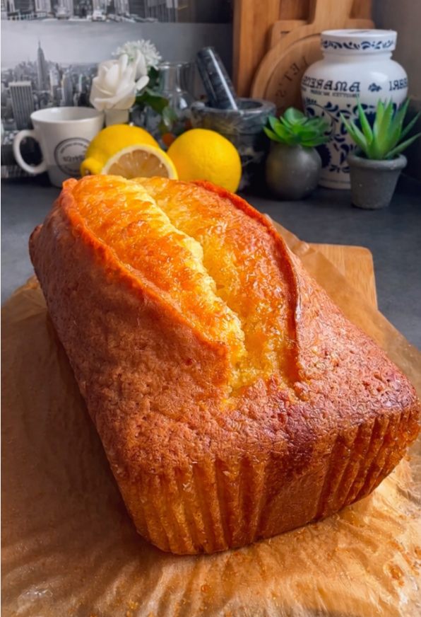 Un cake parfumé, humide, avec une croûte dorée et une bosse parfaite