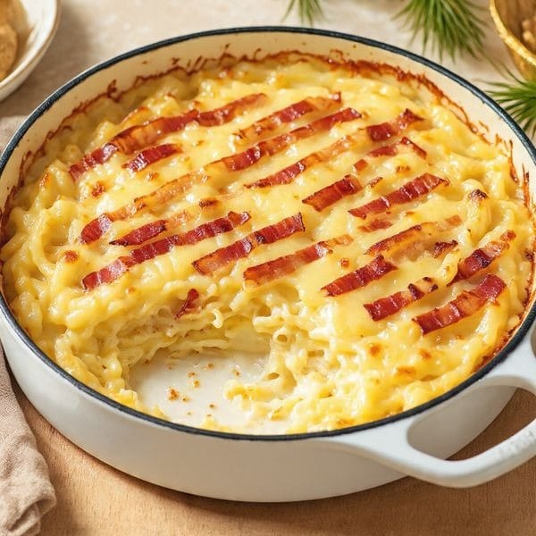 La cassolette de crozets savoyards au bacon et reblochon est l’un des trésors de la cuisine alpine.