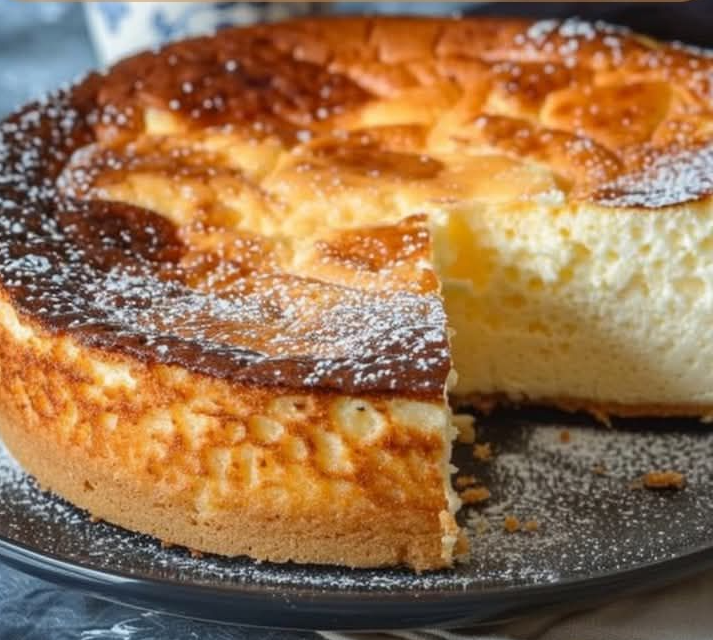 Sa texture est à mi-chemin entre un gâteau et un flan, grâce aux yaourts nature et aux œufs, qui lui donnent un moelleux incomparable.