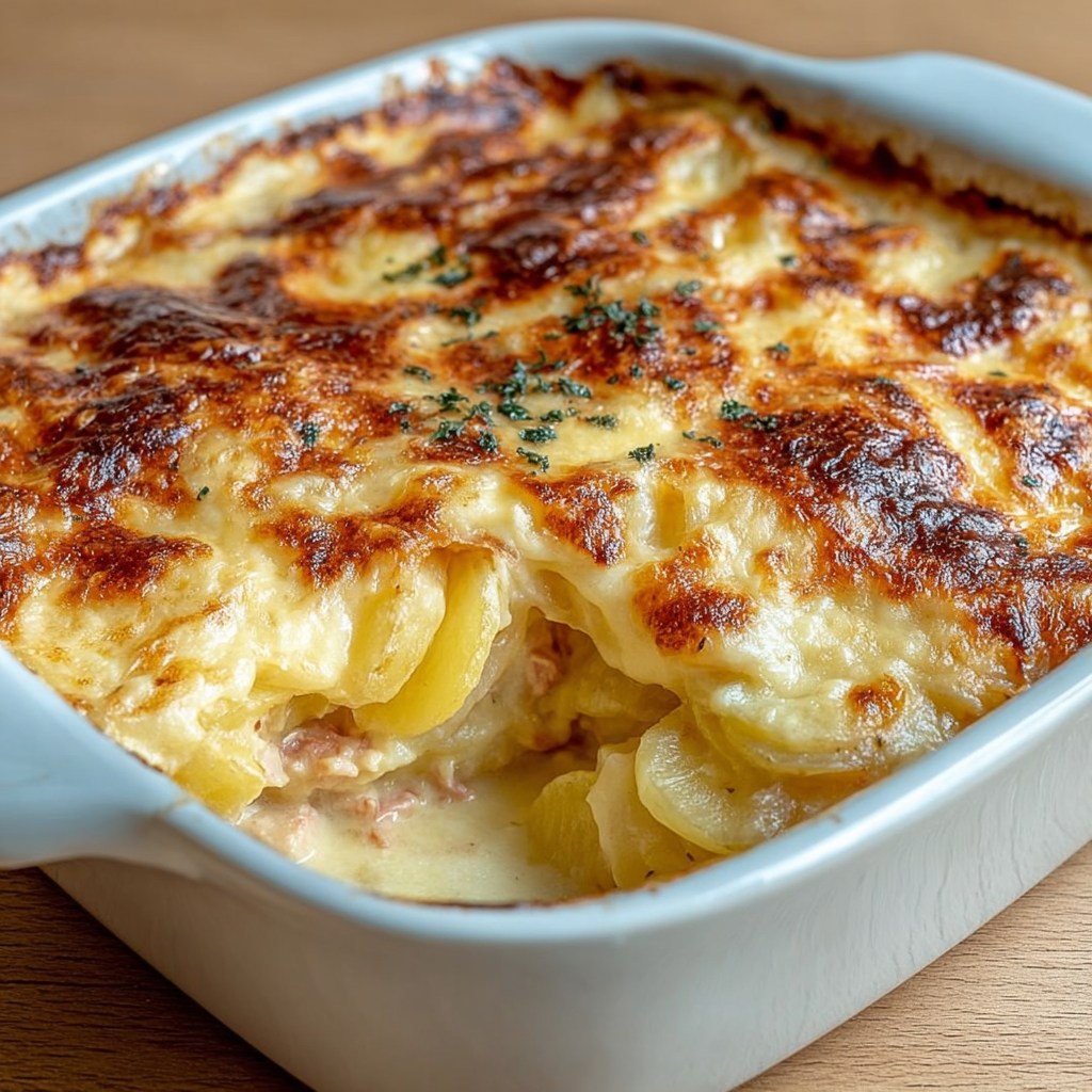 Le gratin de pommes de terre au thon et fromage fondant est un plat familial simple, économique et ultra réconfortant. Il associe la douceur des pommes de terre, la richesse du thon et l’onctuosité d’une sauce crémeuse, le tout recouvert d’un fromage bien fondant et doré. Parfait pour les repas du soir, les grandes tablées ou la préparation à l’avance.