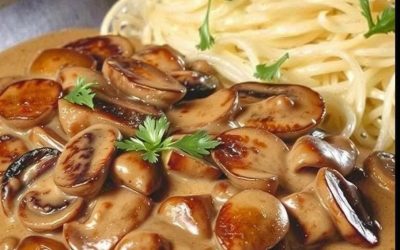 Poêle crémeuse aux champignons et bacon