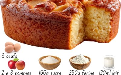 Ingrédients Œufs Sucre Vanille Beurre fondu Lait Farine Levure chimique 1 pincée de sel Pommes Préparation la…