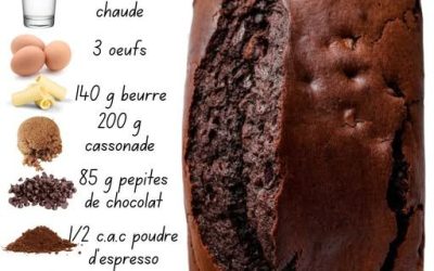Ingrédients Farine Cacao en poudre non sucré Levure chimique Cassonade Beurre ramolli Œufs Poudre d’espresso (facultatif, mais intensifie le chocolat)…