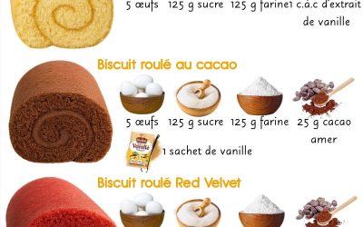 1️⃣ Biscuit Roulé au Cacao Cuisson : 8–10 min Four : 200°C (chaleur statique) Étapes 1️⃣ Séparer les œufs. Monter…