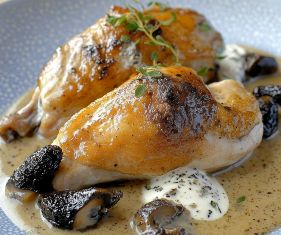 Une pintade fondante aux morilles, nappée d’une sauce onctueuse à la crème, un plat élégant et savoureux parfait pour les grandes occasions ou un repas dominical en famille.
