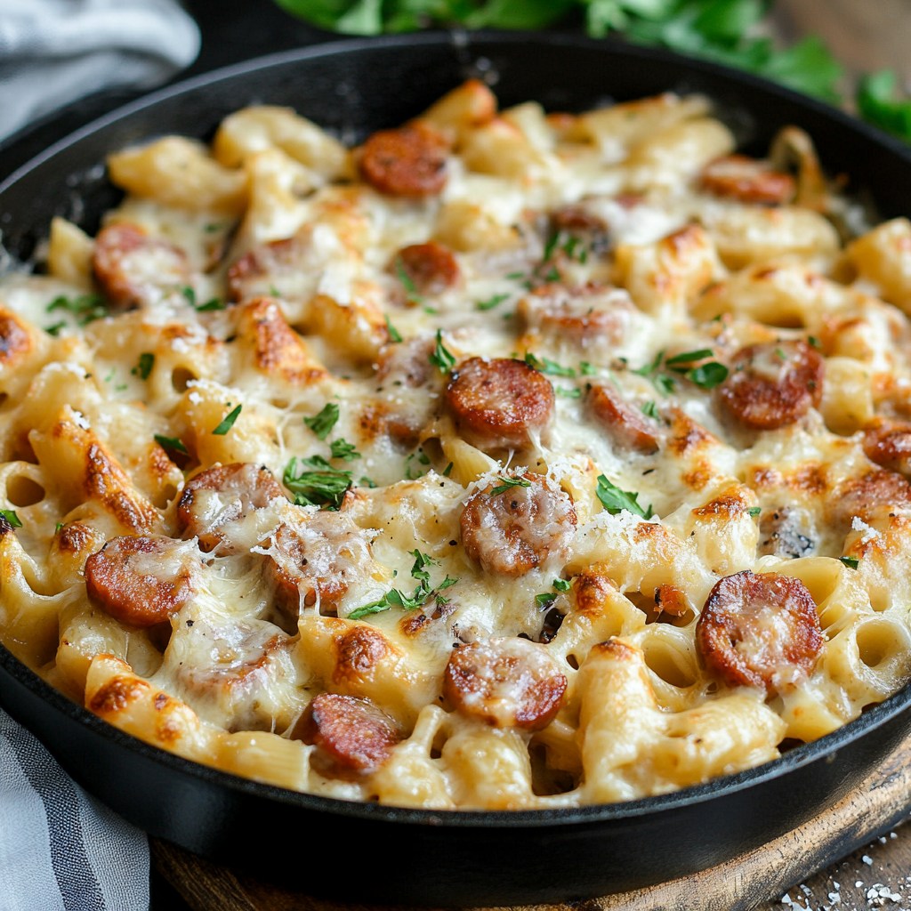 Entre le fondant des pâtes, la richesse de la crème, la touche fumée des saucisses et le goût fondant du fromage… difficile d’y résister