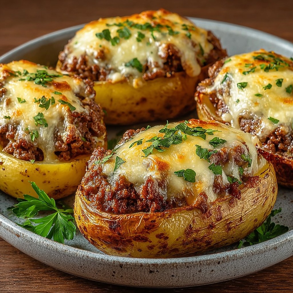Entre la tendresse des pommes de terre, la farce parfumée à la viande hachée et le gratin de fromage doré, c’est un vrai repas convivial qui plaît à toute la famille.