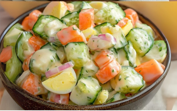 Une salade ultra fraîche, crémeuse et légèrement sucrée, parfaite pour l’été, les barbecues ou comme accompagnement léger