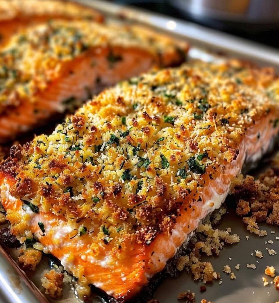Le saumon reste fondant à l’intérieur, tandis que la croûte parmesan–panko devient dorée et croustillante. Idéal pour un dîner sain et gourmand en semaine.